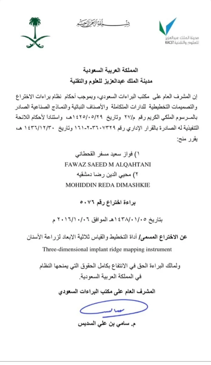 • تطوير بروتوكولات متقدمة فى الزراعة الفورية والتصميم الرقمي للابتسامة.