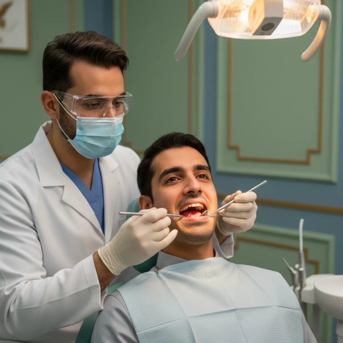 بعد فحص دقيق ومناقشة لتاريخي الصحي، قامت الطبيبة مها الشيخ بشرح الحالة بوضوح ورشحت لي تنظيف الأسنان العميق.