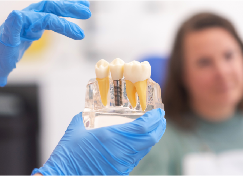 تتضمن هذه العملية زرع جذور صناعية داخل الفك لتعويض الأسنان المفقودة.
